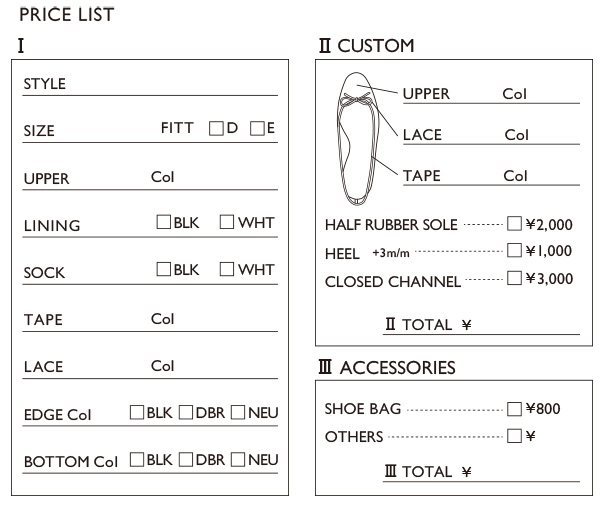 ご来店いただき、サンプルの靴を履いていただき、サイズ・色・仕様等を選定いただきます。製作後、仕上がり次第ご連絡いたします。店頭にてお受け取りいただくか、ご配送いたします。(送料はお客様のご負担となります。ご了承ください。)